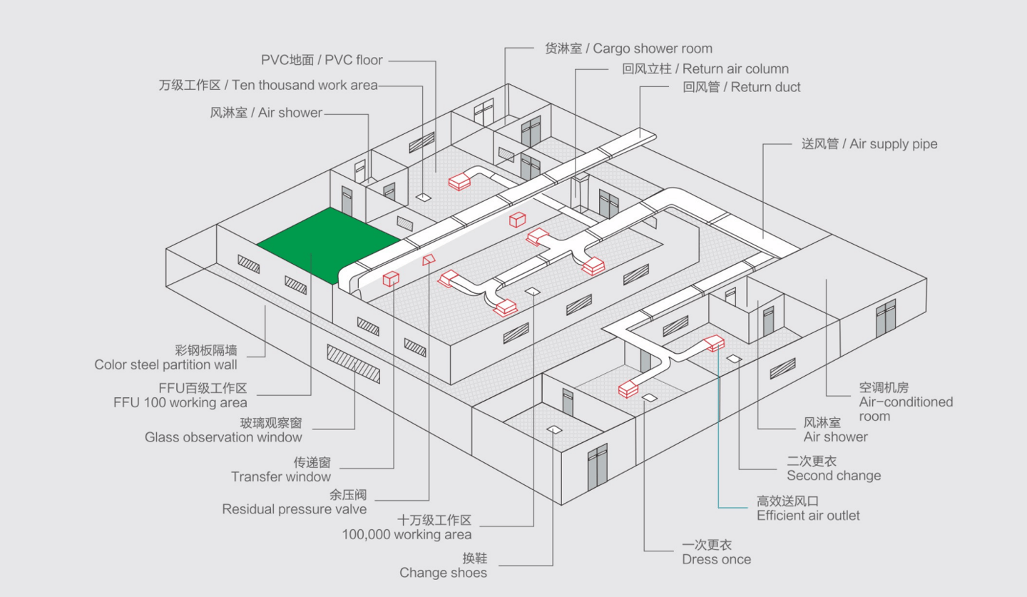 space, and the temperature and humidity, cleanliness, indoor pressure, air velocity and air distribution, voice vibration and lighting, static electricity It is controlled within a certain range of requirements, and the room is specially designed.